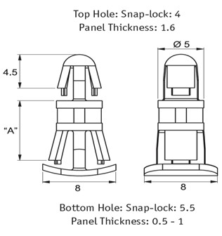 | .底端孔径:弹性锁:5.5mm, 板材厚度:0.5-1mm | |||